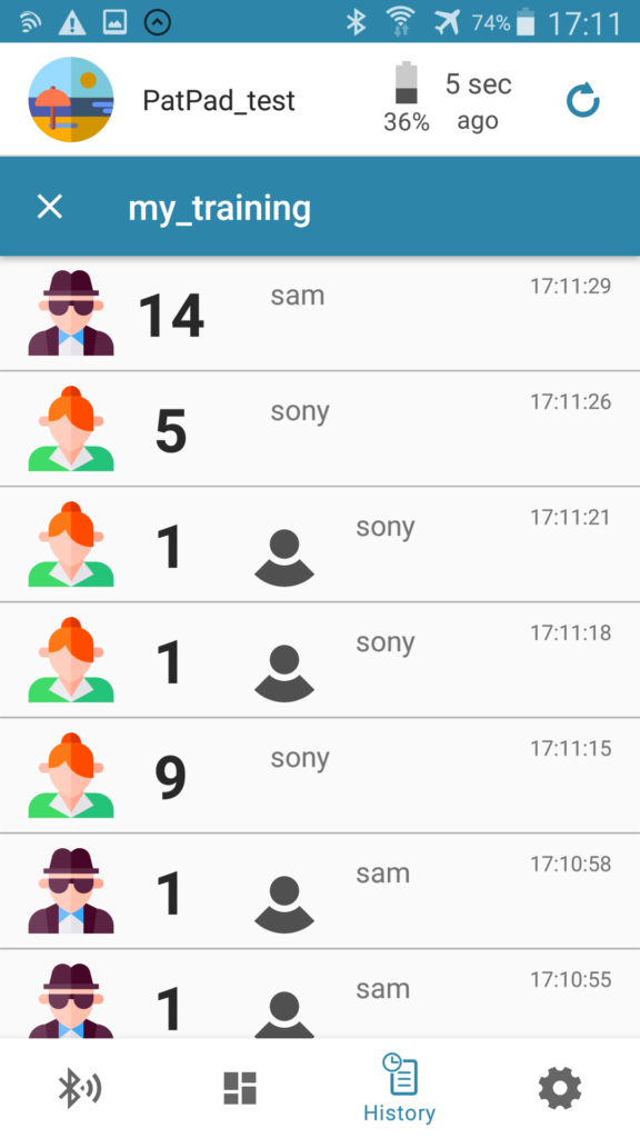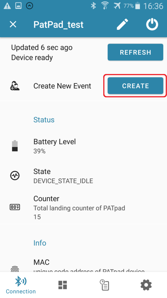 - Additionally to that, a staff/judge person can connect to the PATpad with Android mobile device. In the app create an Event where the whole History of results will be stored. This can be used as a back-up monitoring of the results.